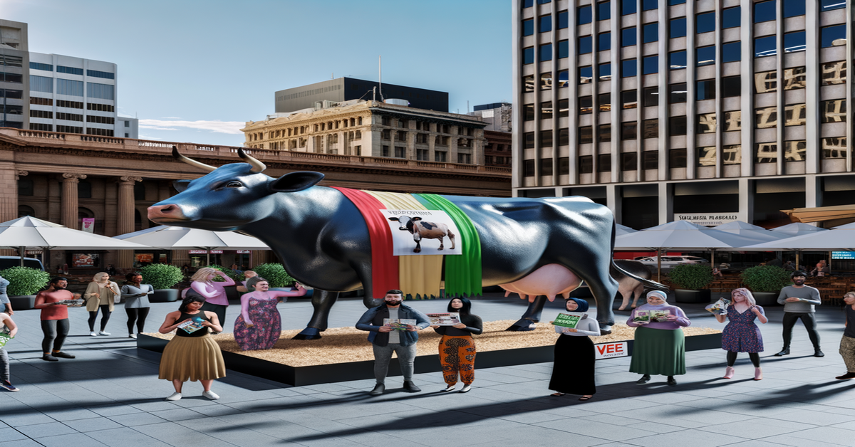 PETA Proposes Vegan Cow Statue for Pioneer Plaza Makeover